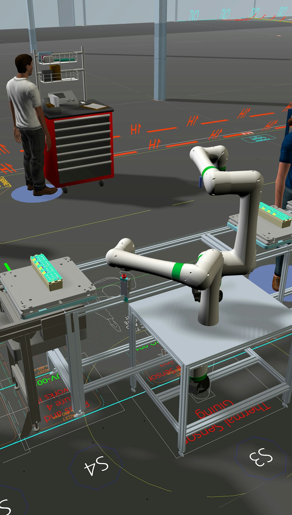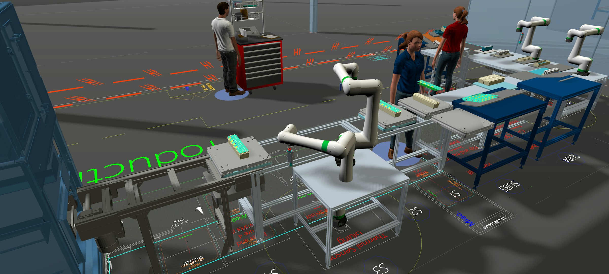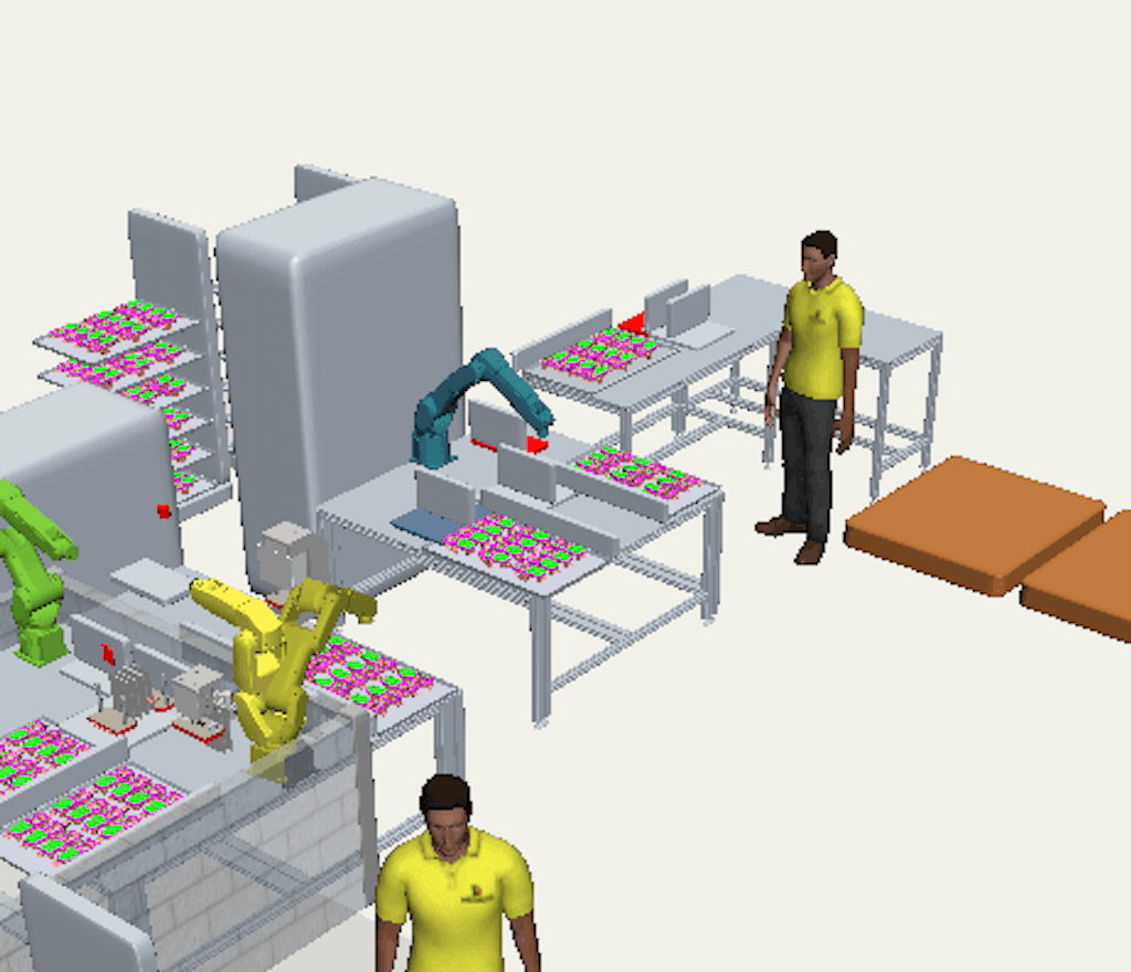 - Visually simulate the layout of work cells, assembly stations, and entire plants